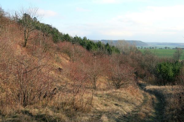 Nová divočina. Zpustlý třešňový sad na terasovitě upraveném svahu východně od PP Chrašická stráň. Částečně zalesněn borovicemi.
