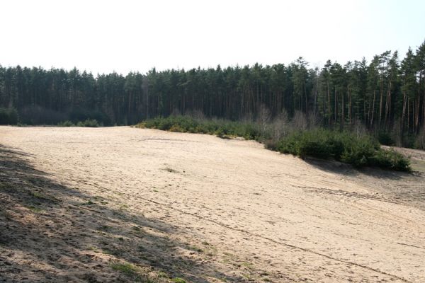 Východočeská Sahara. Písečná duna severně od Semína je se svými sto osmdesáti metry délky největší východočeskou nezpevněnou dunou. Pohled od východu.