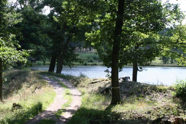 Kochánovické rybníky - hráz Hlubokého rybníka.