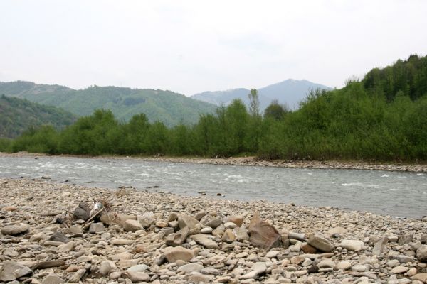 Štěrkové náplavy na březích Teresvy u obce Krasna.