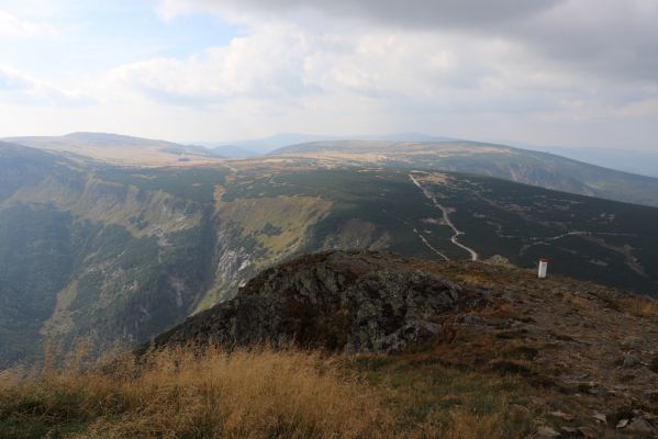 Krkonoše, Sněžka, západní hřbet. Pohled na Luční horu a Stříbrný hřbet.