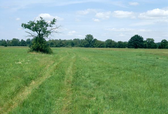 Záplavové louky u pravého břehu Labe před jezem. Biotop kovaříka Oedostethtus quadripustulatus.