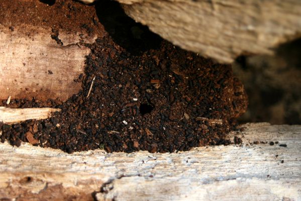 Prasklý dub u Lodrantu - exkrementy páchníka Osmoderma barnabita.