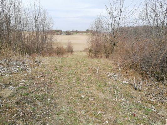 Pohled ze zalesněného Okrouhlíku na třešňovku.
