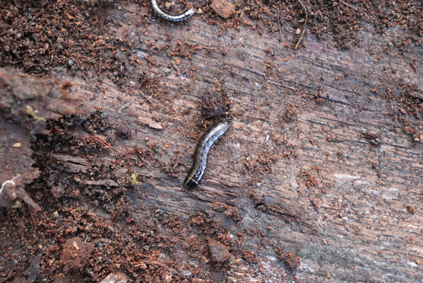 Vrch Lenoch, les pod Havraní skálou. Larva kovaříka Stenagostus rhombeus.