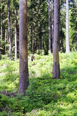 Smrčina v údolí Moravice pod Velkým kotlem. Biotop kovaříka Diacanthous undulatus.