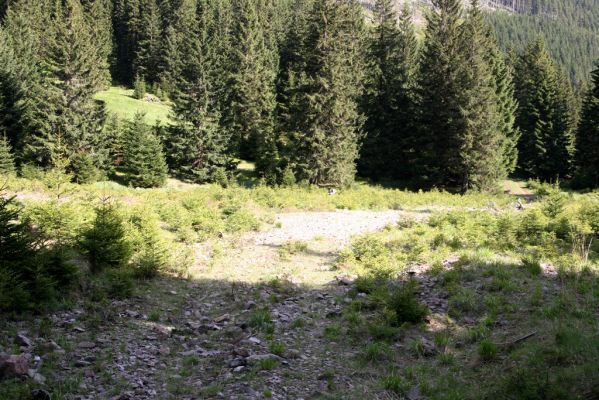 Štěrkové náplavy Rudného potoka v údolí pod bývalou Kovárnou.
