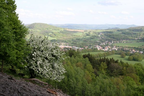 Labské pískovce - Holý vrch. Pohled ze suťového pole na jižním svahu na Jílové.