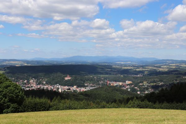 Vrch Dobrošov, pastvina. Pohled na Náchod a Krkonoše.