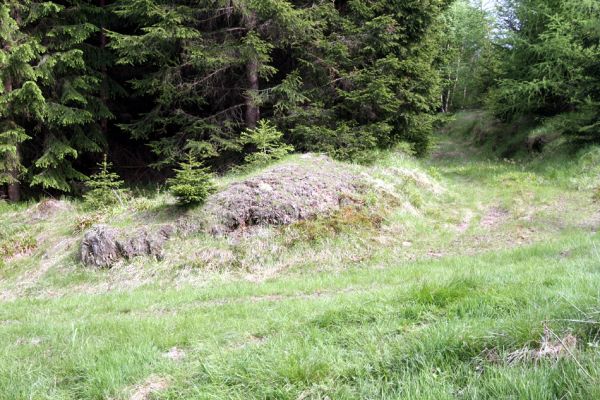 Lesní křižovatka nad údolím Černé vody (pod vápenným kopcem). Biotop kovaříků Orithales serraticornis, Pheletes aeneoniger a Sericus brunneus.