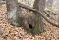 Fintice, vrch Stráž, 2.11.2011Dutý buk v suťovém lese, osídlený kovaříky Crepidophorus mutilatus
