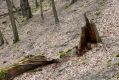 Slanské vrchy, Milíč, 28.3.2014Les u Moravky nedaleko Karólyho loveckého zámečku. Trouchnivý kmen třešně osídlený kovaříky Ampedus pomorum a roháčky Aesalus scarabaeoides.